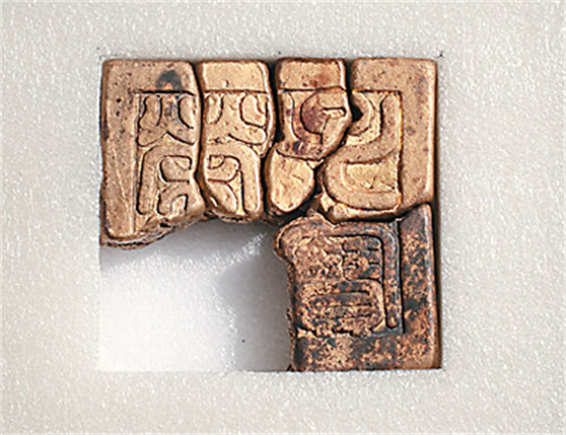 江口明末戰(zhàn)場遺址出水的“榮世子寶”金印局部。