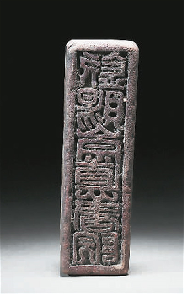“欽賜崇德書院”銅印,表面鎏金,長方形印臺,龜形印鈕,印面篆書“欽賜崇德書院”6字。“崇德書院”為明代吉王所建,是王府內(nèi)講學、刻書的重要場所。吉府“崇德書院”本圖書,無論???、版刻、用紙皆為當時翹楚,亦為后世所重,歷來被視為珍本。這枚吉府書院印的發(fā)現(xiàn),對研究明代文化教育,是非常珍貴的實物史料。