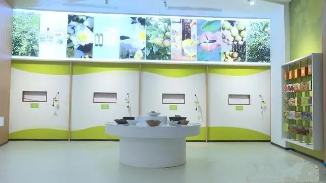 “自然的饋贈(zèng)”展示區(qū),主要以習(xí)近平總書(shū)記關(guān)于油茶產(chǎn)業(yè)發(fā)展的重要指示精神作為展覽主線,結(jié)合油茶四季生物學(xué)特性展開(kāi)全篇,構(gòu)筑序廳、引子等主題展區(qū),象征油茶產(chǎn)業(yè)厚積薄發(fā)、持續(xù)發(fā)力,全面推進(jìn)鄉(xiāng)村振興,助力實(shí)現(xiàn)共同富裕。